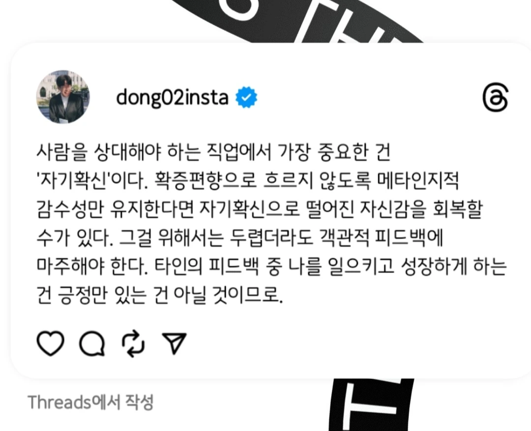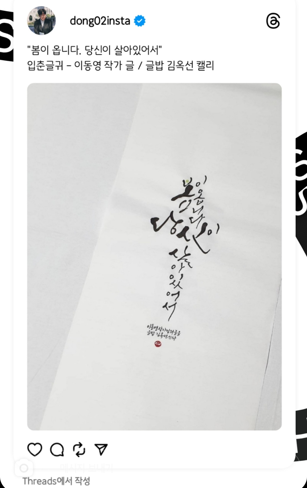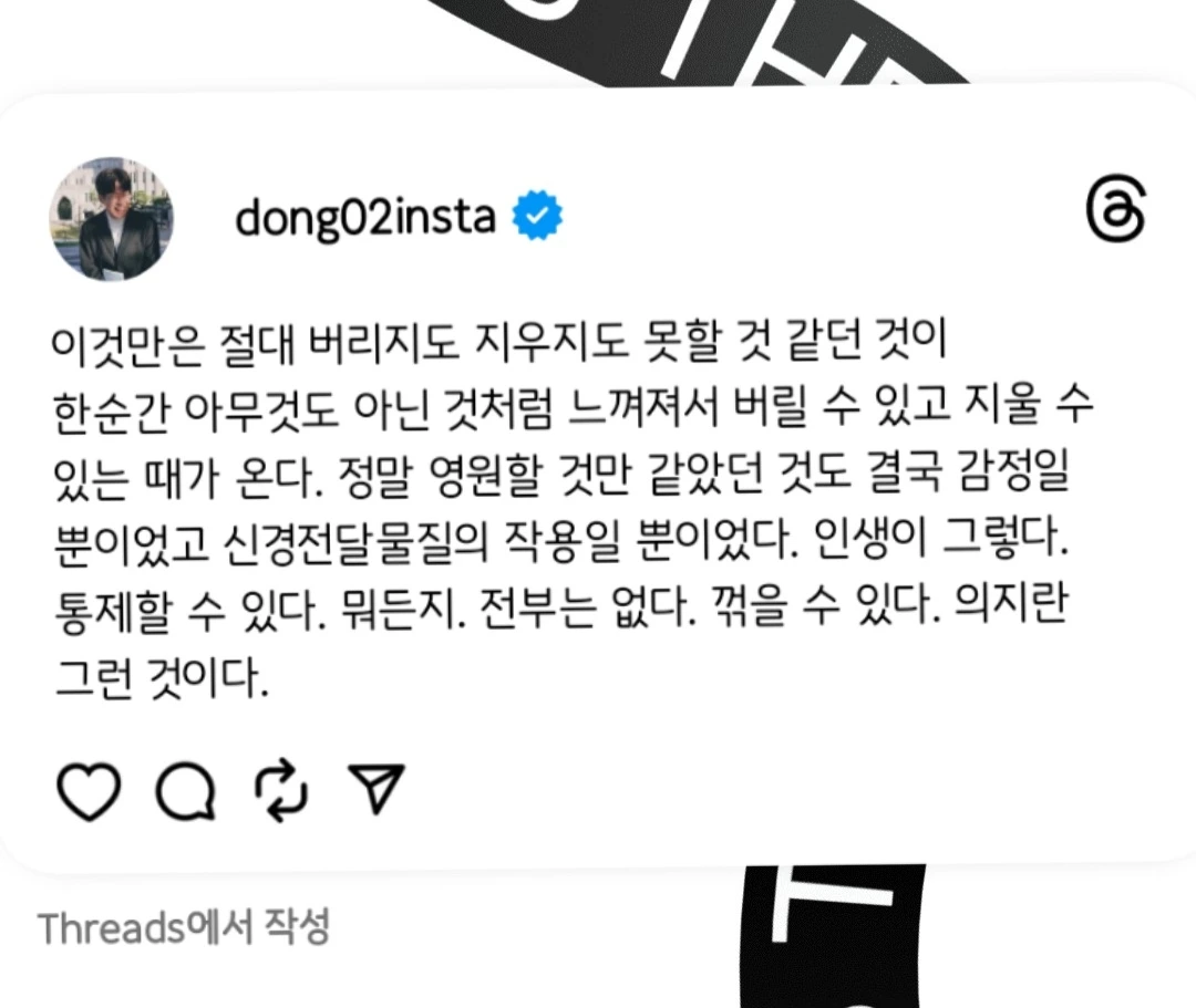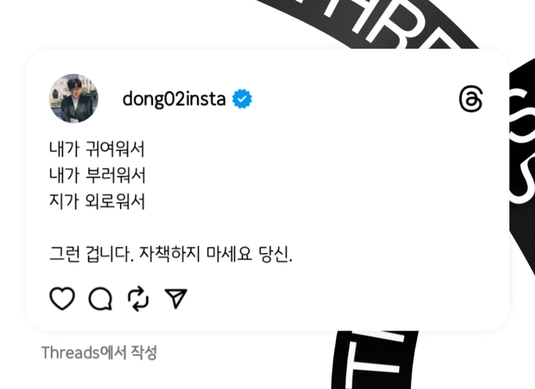 아래는 제가 '글쓰기 플랫폼'으로 운영하는 스레드에 올린 짧은 글귀 문장들입니다. 전에는 대개 (릴스 활성화 전) 인스타그램에 올렸거나 메모장에만 적어두었던 짧은 분량의 글을 스레드에 올립니다.