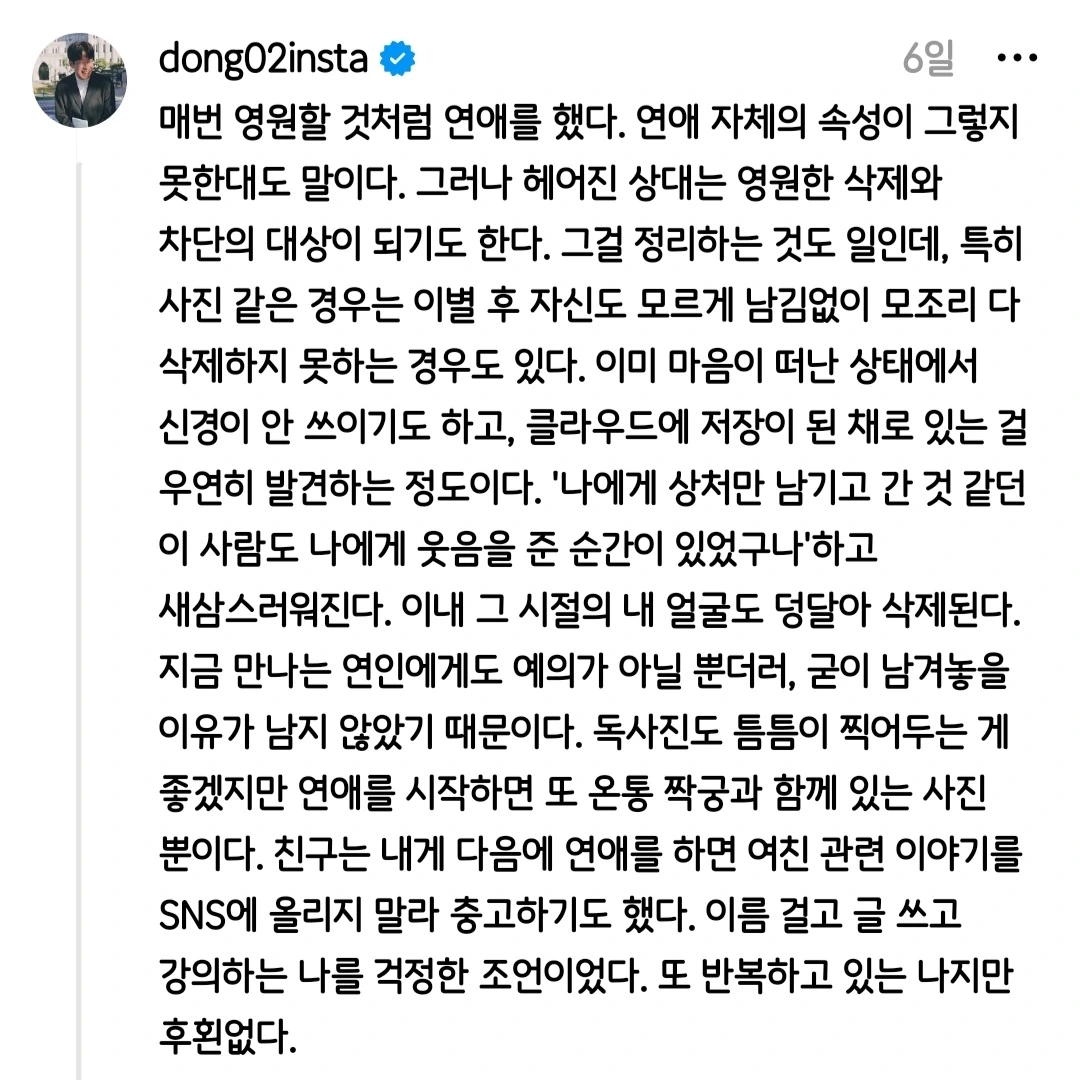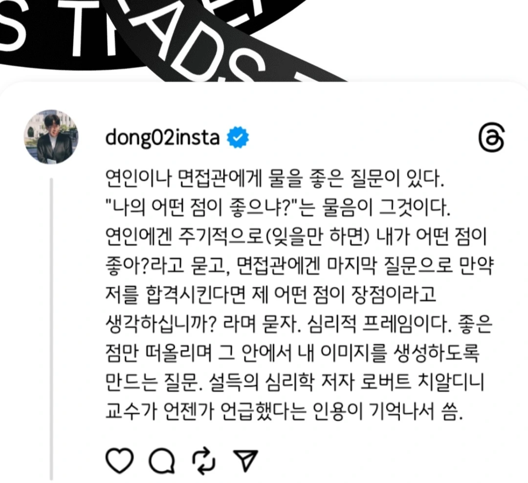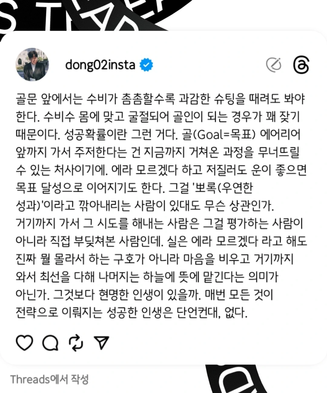 아래는 제가 '글쓰기 플랫폼'으로 운영하는 스레드에 올린 짧은 글귀 문장들입니다. 전에는 대개 (릴스 활성화 전) 인스타그램에 올렸거나 메모장에만 적어두었던 짧은 분량의 글을 스레드에 올립니다.