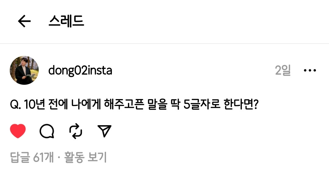 10년 전의 나에게 해주고픈 말을 딱 다섯 글자로 한다면?