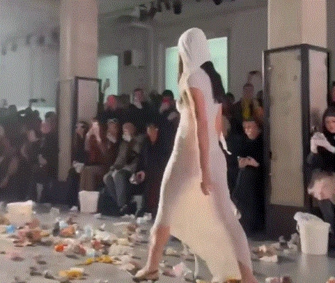 이탈리아 밀라노의 한 패션쇼 현장. AI 영상이 아닌 실제 광경이다. 처음엔 여느 패션쇼처럼 모델들이 멋진 옷을 차려 입고 우아한 워킹을 시작했다. 이때, 관객 중 한 명이 각종 쓰레기를 집어 작정한듯 모델을 겨냥해 무대 위로 던져댔다. 말리는 사람은 그 누구도 없었다.