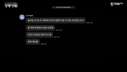사단장이 화를 내고 있다는 내용의 포11대대장 메시지(실제 메시지를 토대로 재구성한 그래픽). 한겨레TV