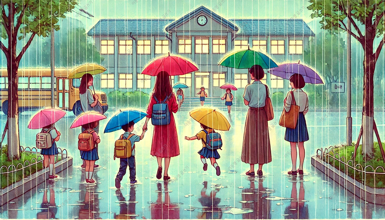 - 엄마들은 하나 둘 학교 운동장으로 도착했다. 차문을 열고 나와 분홍색, 노란색 우산을 씌워주는 엄마들. 그 인파에 둘러싸인 친구들을 보며 난 부러웠다. 그날따라 비는 더 세차게 내렸던 것 같다. 하교를 알리는 종이 치고 한 10여 분 즈음 흘렀을까. 나는 양말까지 젖은 채로 우두커니 서서 학교 후문에 홀로 덩그러니 남겨졌다.