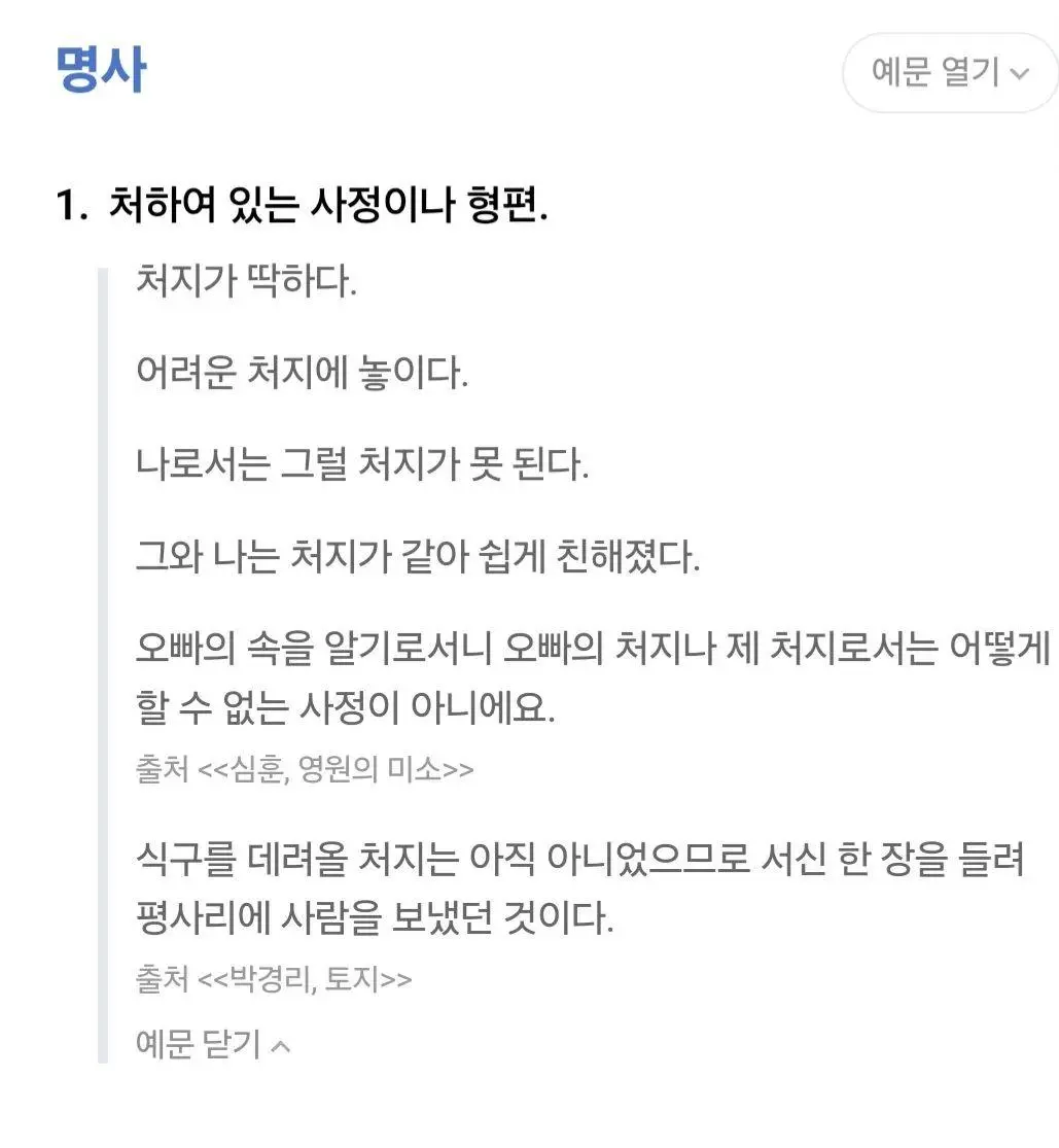 예문) 나는 내 아내에게 그런 말할 '처지'가 아니다.