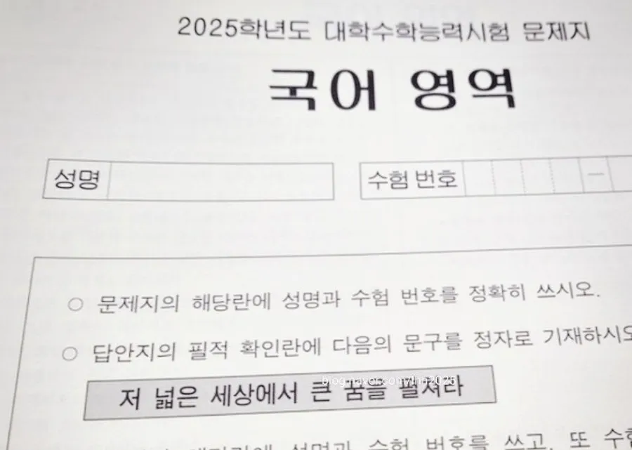 수능 필적 확인 문구 "저 넓은 세상에서 큰 꿈을 펼쳐라"