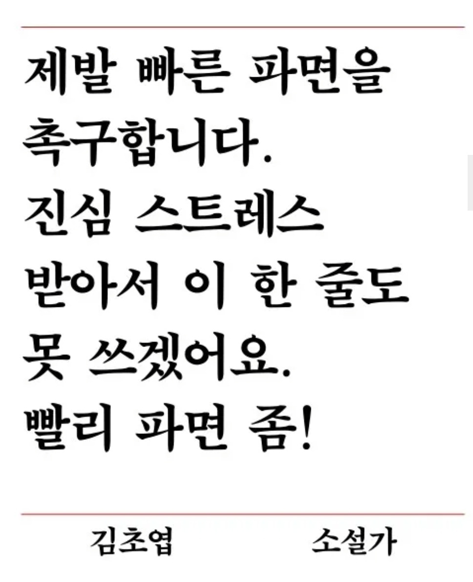 소설가 김초엽: “제발 빠른 파면을 촉구합니다. 진심 스트레스 받아서 이 한 줄도 못 쓰겠어요. 빨리 파면 좀!”