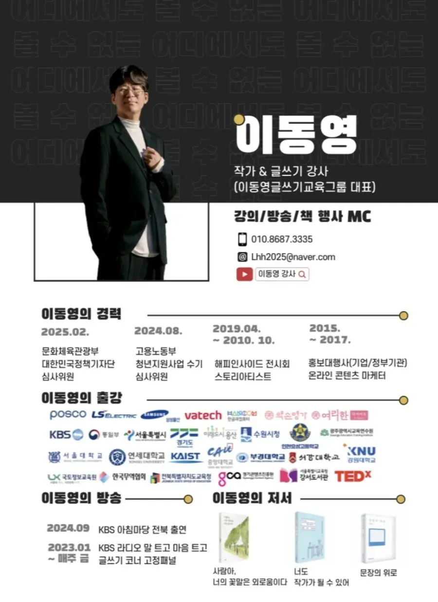 10년 넘게 강사 경력을 쌓다 보니 저를 세 번 이상 불러주는 곳이 몇 군데 쌓였네요. 제가 잘하고 있다는 방증이 되어주는 것 같아 뿌듯합니다.