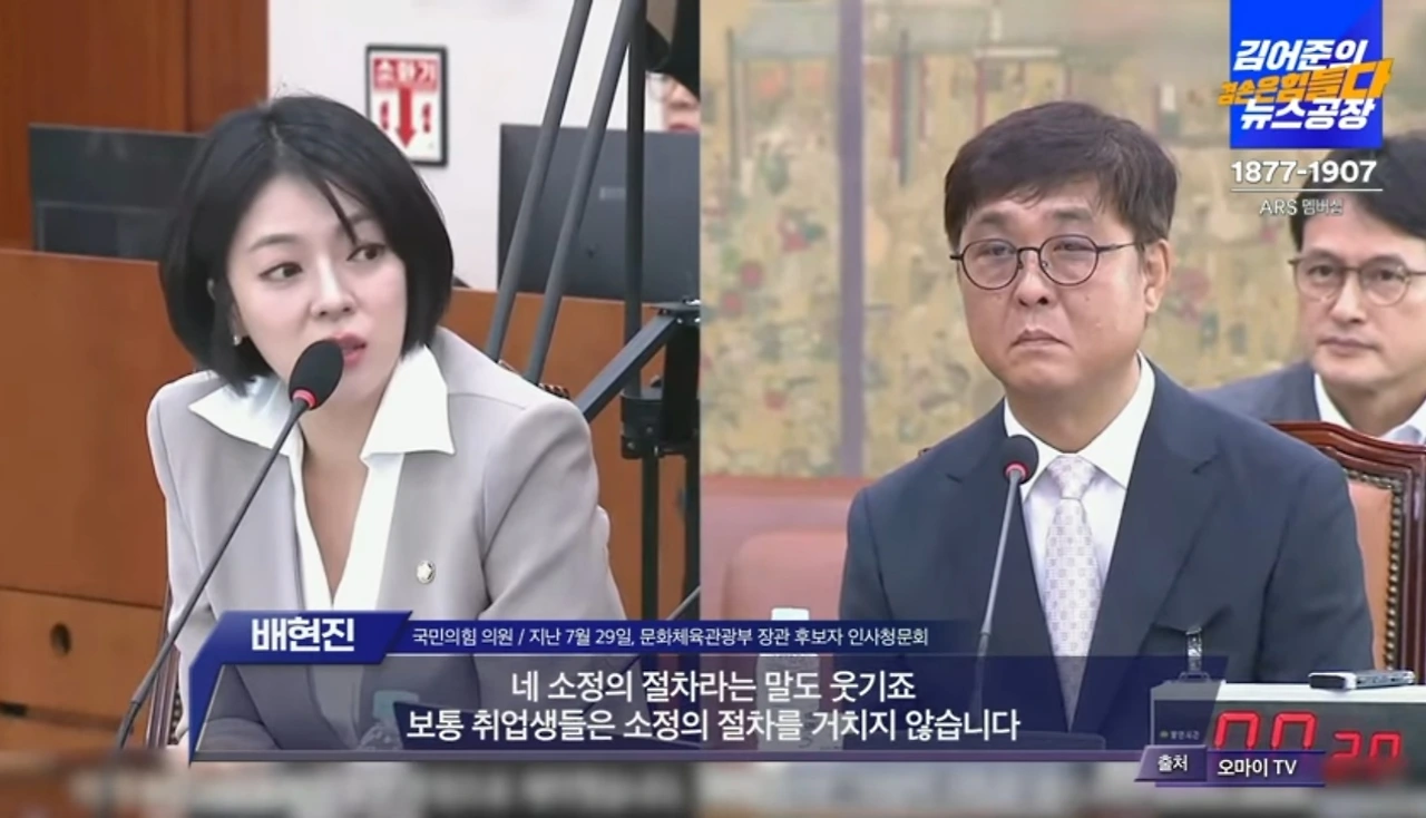 문해력 논란이 일반인에게 일어도 뉴스에 나올 소식인데, 무려 메인 뉴스를 책임지던 공영방송의 아나운서 출신이 정치적 공격에 눈이 멀어 인사청문회 자리에서 '소정(所定)'이란 단어를 이상한 맥락에 집어넣어 분노하는 건 눈살을 찌푸리게 하는 장면이 아닐 수 없었다.