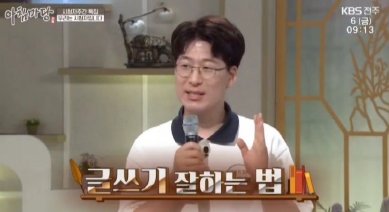 실제 아침마당 출연 모습시청자로서 인터뷰만 한 게 아니라, 전북 출신의 '글쓰기 강사'로서 저를 제대로 소개하고 단독으로 특강 할 기회까지 주셨어요. 짧은 시간이었지만, 좋은 기회였습니다. TV의 영향력이 예전만 못하다 한들, 아침마당은 여전히 고정 시청자가 있고, 방송 관계자들도 모니터링하는 전통 있는 프로그램이니까요.