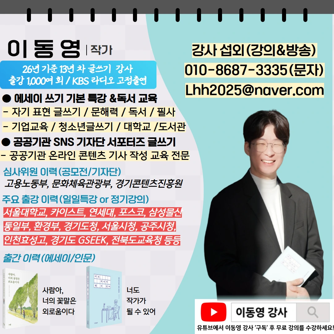 글쓰기 팁 연재 중(이동영 글쓰기 강사)