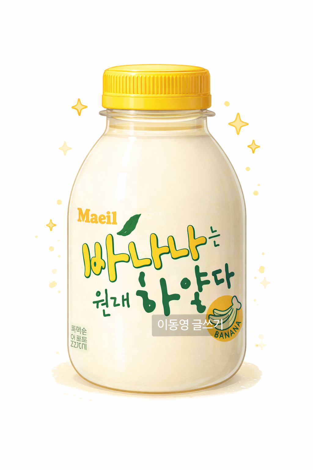 뚱바의 독보적인 판매량과 브랜딩 성공으로 우리는 바나나맛 우유를 떠올리면 노란색부터 연상합니다. 하지만 실제 바나나는 노란 껍질 속에 하얀 속살을 지니고 있죠. 저는 이 글을 통해 새해에 글쓰기를 시작하려는 분들에게 이런 신선한 충격을 주고 싶습니다.
