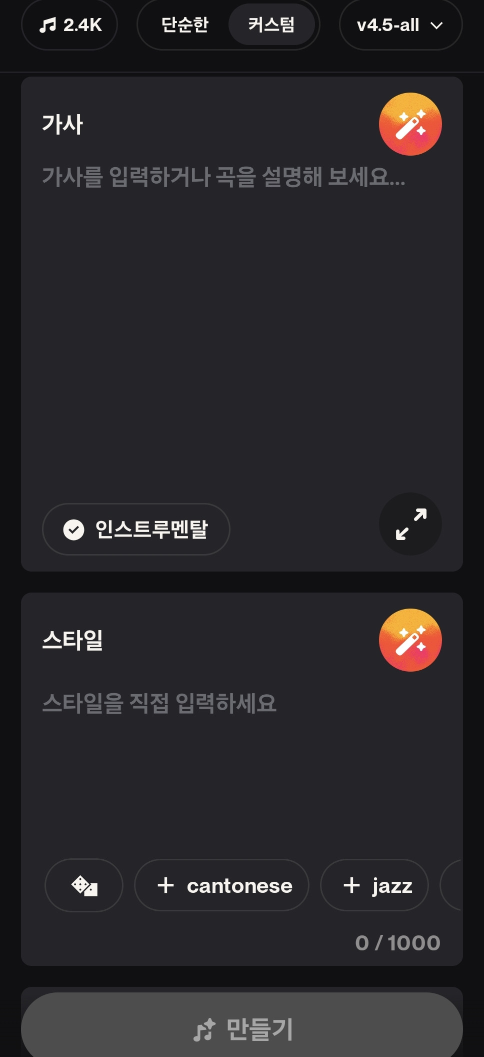 작곡과 보컬은 프롬프트로 생성한 것입니다.
