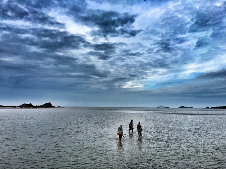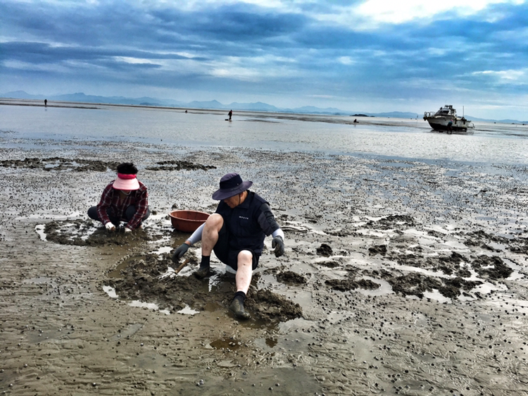어스름 새벽 5시에 출항하여 오후 3시 넘어서야 되돌아왔다. 처음엔 사진찍느라 정신이 없었지만 이내 아이폰 배터리가 다 나가고나서 정신을 차리고 생합을 찾아 열심히 갯벌을 갈고리질 했다.