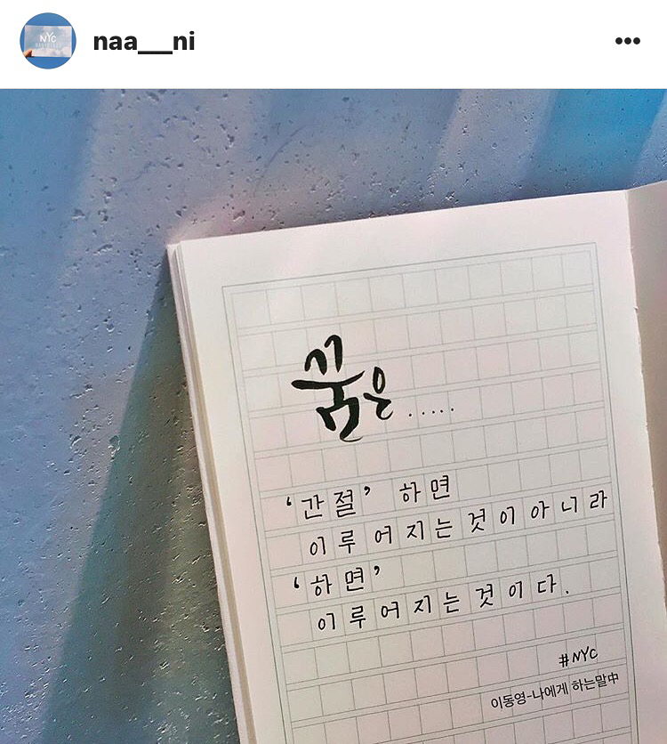 캘리그라피 : 나니캘리 #nyc(인스타그램)