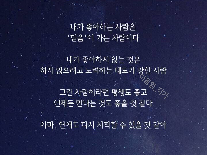 내게 관계란 늘 두려움이었는지도 모른다. 특히 연애가 그렇다. 계산없는 행동에 대한 보상은 배신이라는 경험뿐이었다. 어느 순간 등을 돌리는 사람부터 그려진다. 내가 좋아하지 않는 것을 반복하는 사람의 태도를 용서하면 꼭 그 반복으로 뒤통수를 쳤다. 그 태도가 시들어갈 즈음이 권태기였던 것 같다. 사람과의 좋은 만남, 즉 좋은 관계와 유지라는 건 서로를 배려하는 태도에 기인한다.