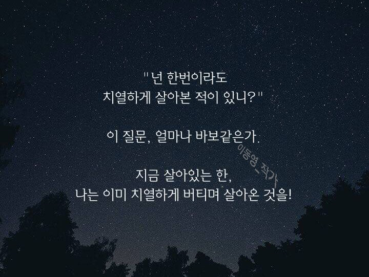 지금 살아있는 그 자체가 치열함의 증거인데, 얼마나 더 치열하라고. XXX 말라그래.