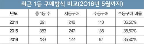 5월 기준이라 애석하지만, 9월 현재 기준으로 대략 통계를 내보아도 정부의 공식발표처럼 자동비율이 65%이상이라면 수동구매쪽 당첨확률이 높다고 할 수 있다.