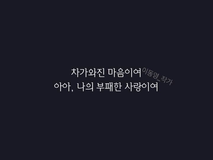 내 마음은 마치 냉동실처럼 얼어붙을 지경인데그 시절 속 사랑은 여전히 뜨거우니 썩어문드러진 걸 원망할 객체는 없으리라함께 살아갈 온도는 혼자만의 것으로 지속시킬 수 없는 것을