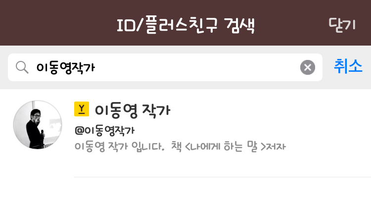 이동영 작가에게 감성글귀 & 강좌•모임 or 책소식 받는 법친구 검색 > '이동영 작가'