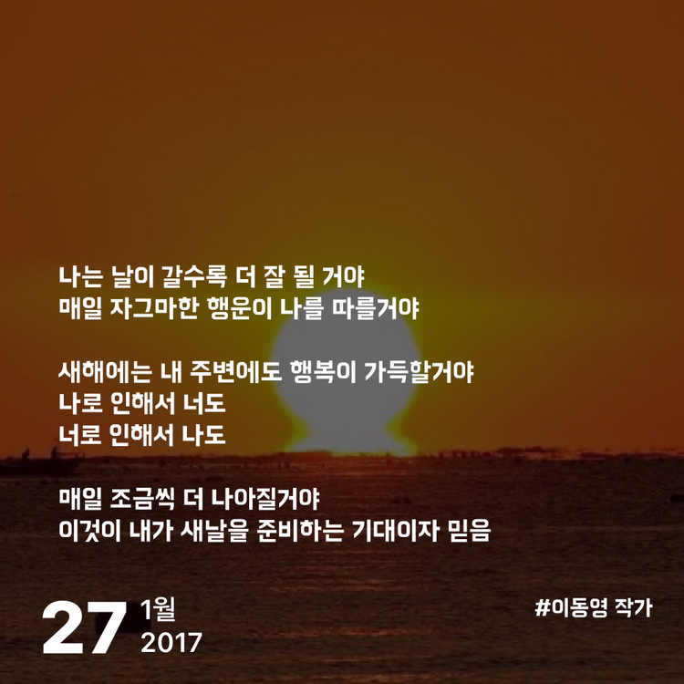 2018년 무술년 새해 인사말 새해 복 많이 받으세요 인사말 대신에..?! | 너무 열심히 살지 않아도 괜찮을 일상을 축복합니다.눈치 보고 경쟁하는 대신도전하고 돌파하며 느낄 다행함을 소망합니다.틈을 허락하는 하루하루가 모여여유로운 한 해를 이루는당신의 2018년이 되기를 바라고 또 바랍니다.돈에 얽매이지 않고 사람이 먼저인 전제로써무엇보다 자기 자신이 행복한 나날을 기원합니다.설렘을 위하여 몸과 마음을 바칩시다.부디 사랑합시다.(이
