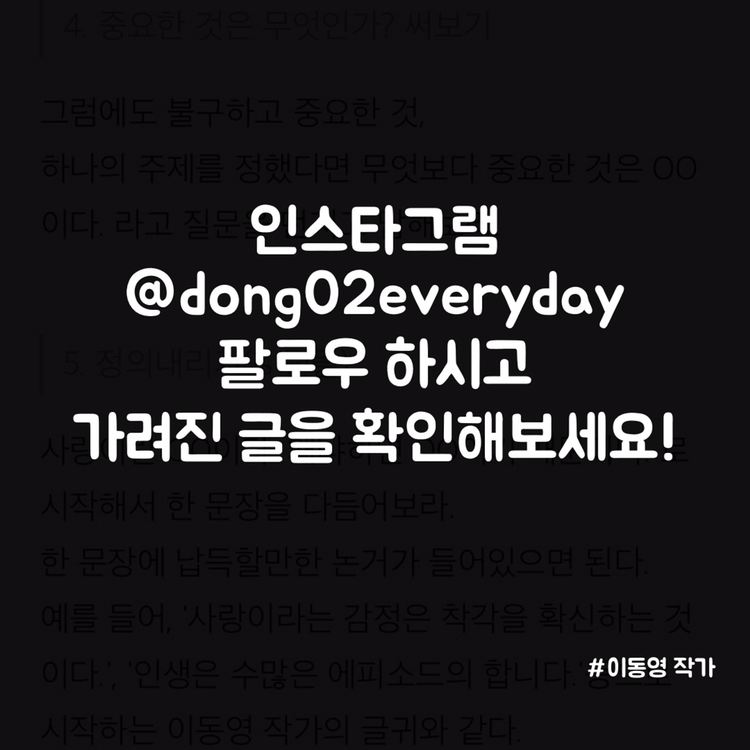 그동안 매일매일글쓰기 팁을 써왔는데, 이 글은 그야말로 속성 요약 종합판이다. 출처는 이동영 작가.