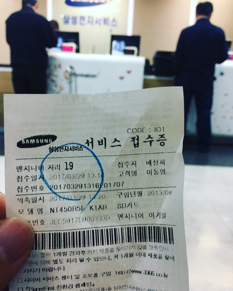 약 15분 만에 삼성서비스센터에 왔다.