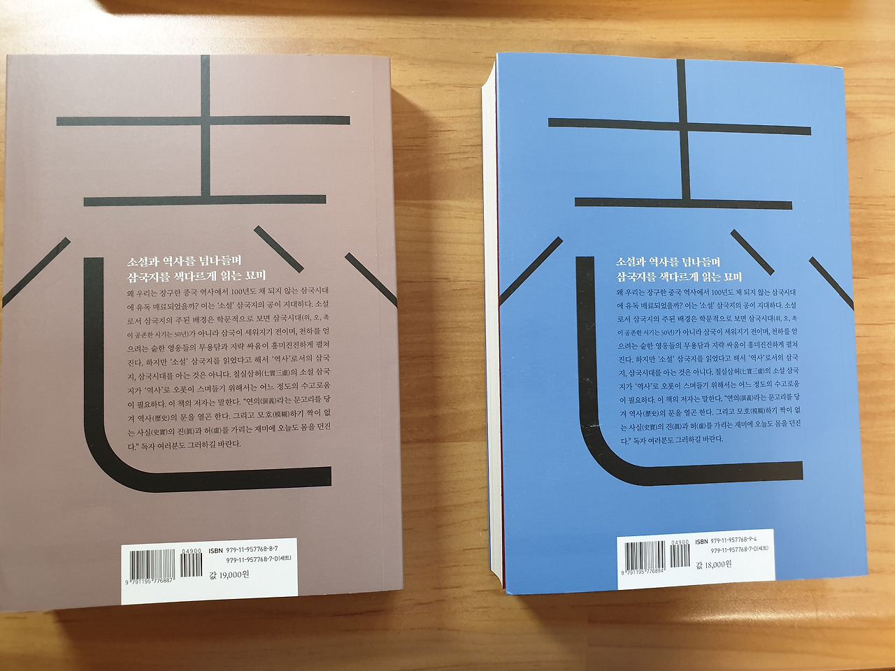 삼국지(三國志)를 구성하는 한자를 앞뒤 표지에 형상화하여 표지에 활용했습니다. 약간 기호화한 면이 있는거 같은데 간단한 이미지로 '삼국지'라는 것을 설명한 책이라는 의미를 잘 표현한거 같습니다.
