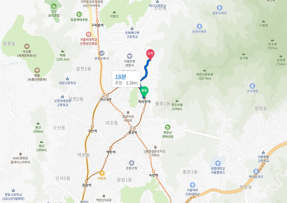 걷기 루트 : 독바위역 - 불광중학교 - 북한산길