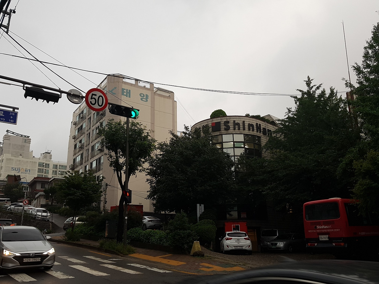 오래된 건물 같아 보이는 신한화구 건물