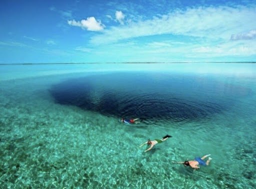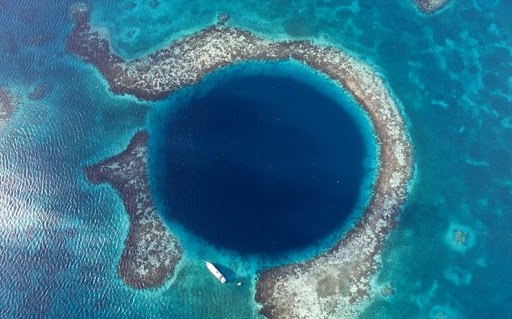 예전 '미니국가 랜선여행' 모리셔스편에서 수중폭포를 알아본 적이 있는데 이번에는 벨리즈 근처 바닷속에 있는 구멍인 딘즈 블루홀을 꼽아 보았다. 전 세계에서 가장 깊은 블루홀이라 하여 이곳은 세계자연유산으로도 선정되었다고 한다.