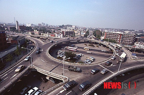 이날도 이촌역에서 출발해 대략 50분이 걸려 남산이 보이는 삼각지에 도착했다. 이곳에 가면 현재 대우월드마크라는 아파트가 압도적인 모습을 보이고 있고 길건너에는 전쟁기념관이 맞아주고 있는데 예전에는 삼각지 고가차도가 이곳의 랜드마크 건물이었다. 공중애서 빙글빙글 돌면서 원하는 시간에 원하는 방향으로 가는 시스템. 어렸을 때는 일부로 이곳에 가봤으면 좋겠다는 생각도 했을정도로 처음에 이곳을 봤을땐 꽤나 큰 문화 충격을 받았었다. 하지만 이제 고가는 역사속으로 사라졌으며 삼각지에는 남산이 쾌적하게 보이는 풍경이 사람들을 맞아주고 있다.