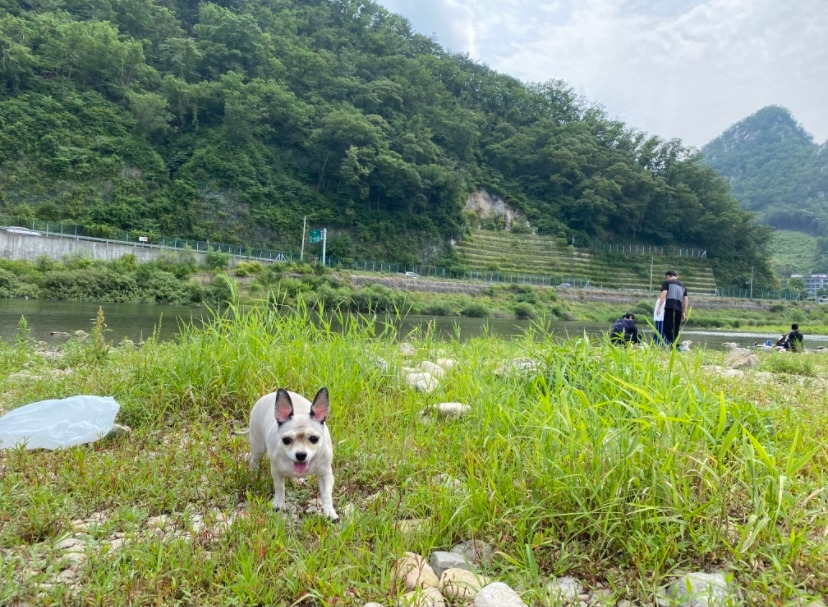 여름이 되고, 여전히 코로나로 답답한 일상이 반복되자 우리는 산으로 계곡으로, 공원으로 떠났다. 강아지들은 당연스레 함께였다. 작년 여름 전국을 떠들썩하게 한 별다방의 캠핑 의자와 함께 공원에서 강아지들과 간단한 캠핑을 즐기기도 했다. 나무가 보이는 곳에 의자를 놓고 돗자리를 깔고 도시락을 까먹는 초간단 캠핑이었다. 또 도봉산 근처에 사는 우리 집에서 15분만 걸어가면 도봉산 계곡이 나와, 강아지들과 계곡도 여러 번 갔다. 계곡 물이 콸콸 흐르는 것을 마치 할아버지가 뒷짐 지고 경치 구경하듯 한참 쳐다보는 똘이를 볼 수 있었다.