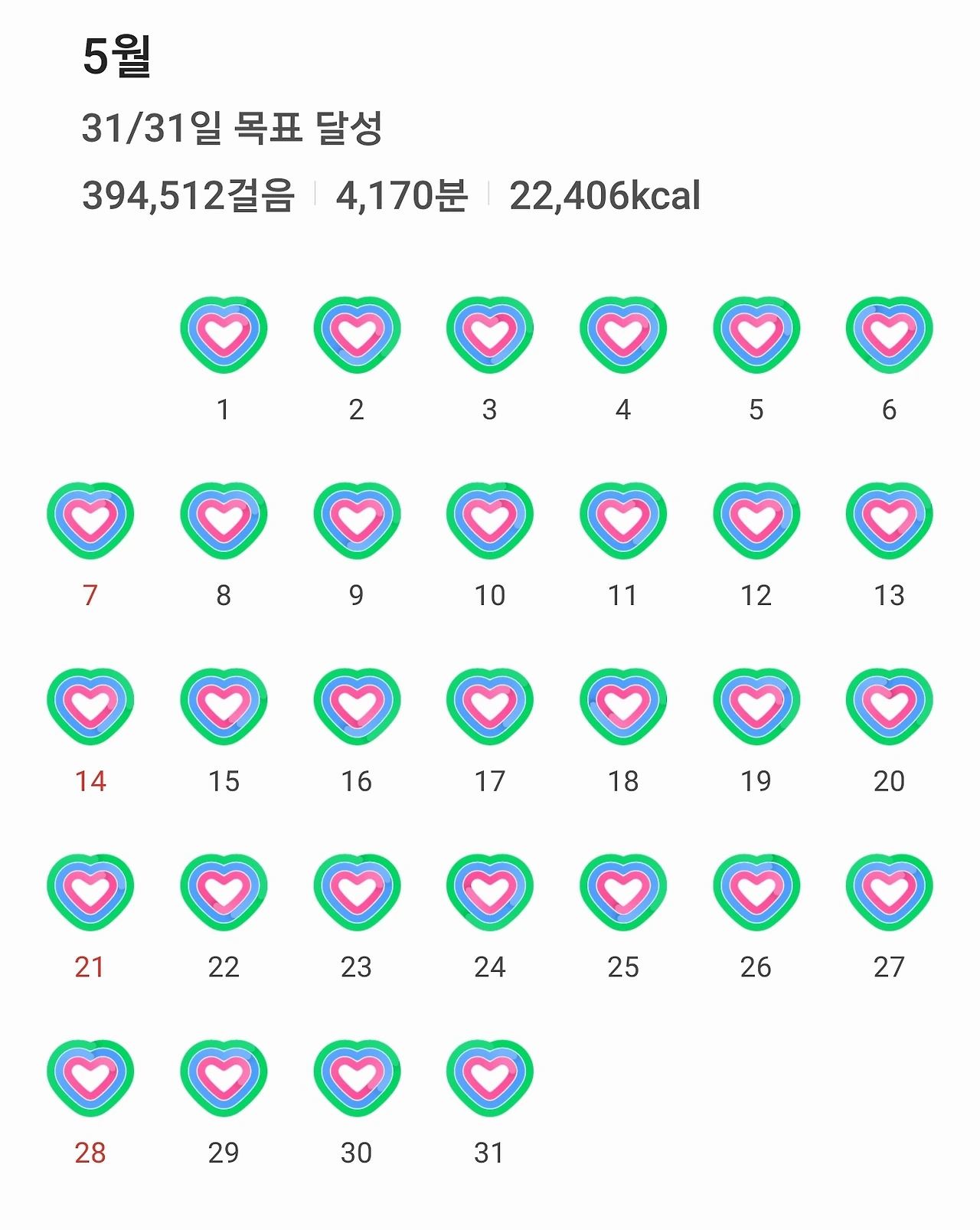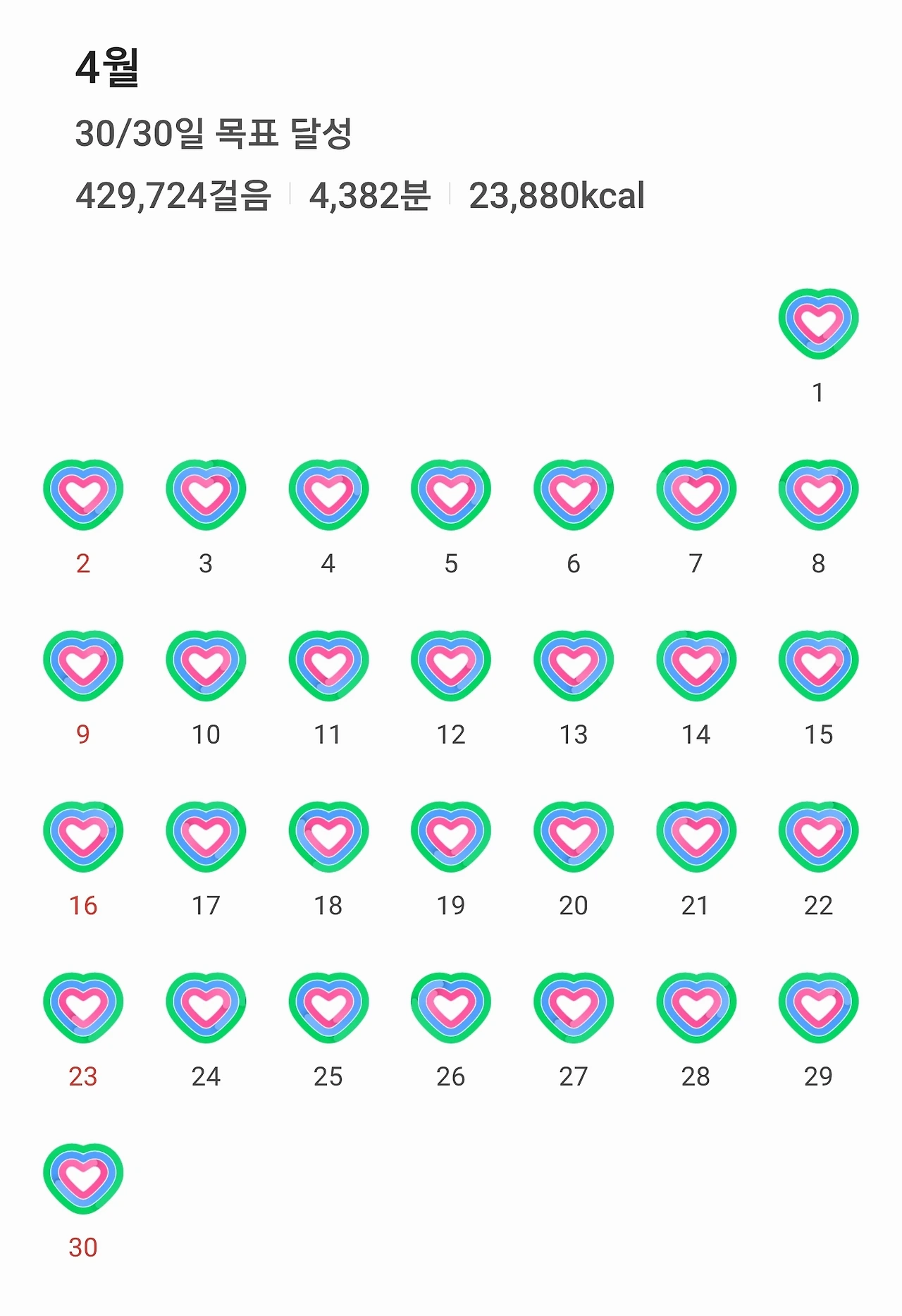 4월 이후 매일 만 보 이상을 걸은 기록 / 삼성 헬스