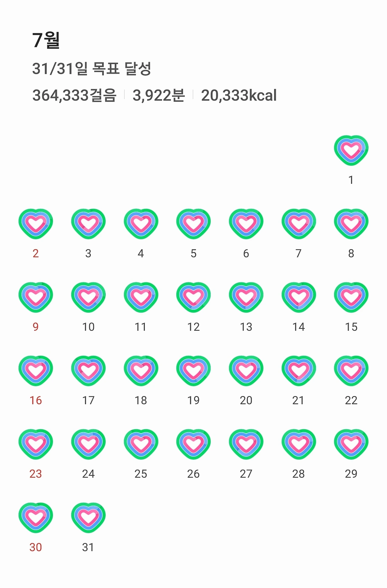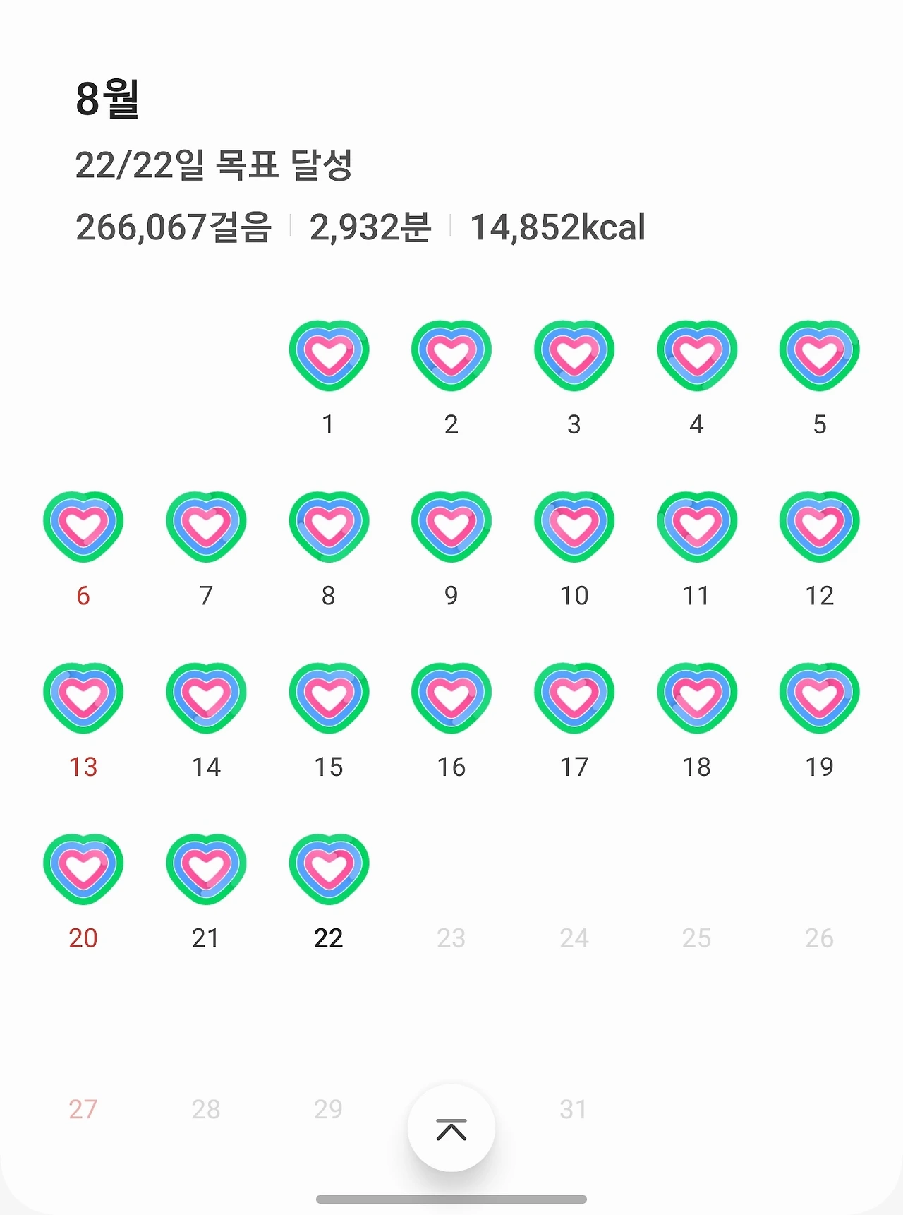 4월 이후 매일 걸은 기록을 멈추는 게 아까워서 10,000보 이상 걷기를 그만두지 못한다. 비가 올 때 우산을 쓰고 동네를 돌아다닌 적도 있을 정도다.<아주 작은 습관의 힘>에서는 '습관 추적'을 말한다. 습관 추적은 행동 변화의 다양한 법칙들을 더욱 강화해서 강력한 효과를 발휘한다고 소개한다. 달력에 X 표시가 이어지면 우리는 그 달력을 봤을 때 다시 그 행동을 하게끔 부추긴다. 게다가 자신의 발전을 눈으로 보고 이를 되돌리고 싶지 않다는 내적 동기를 일으키며, 성공적으로 습관을 수행하고 기록하는 순간 만족감을 느끼게 해 준다고 말한다.