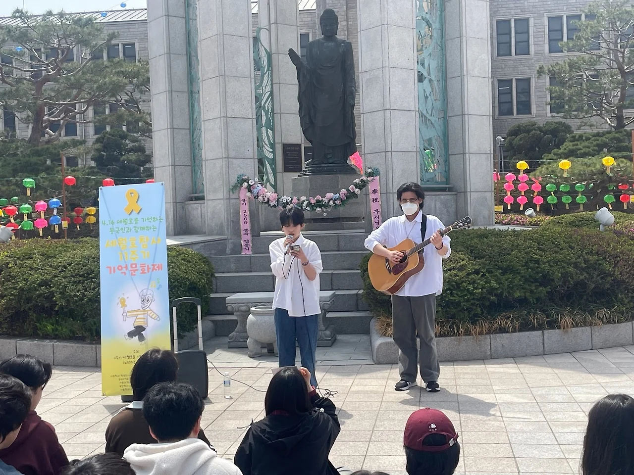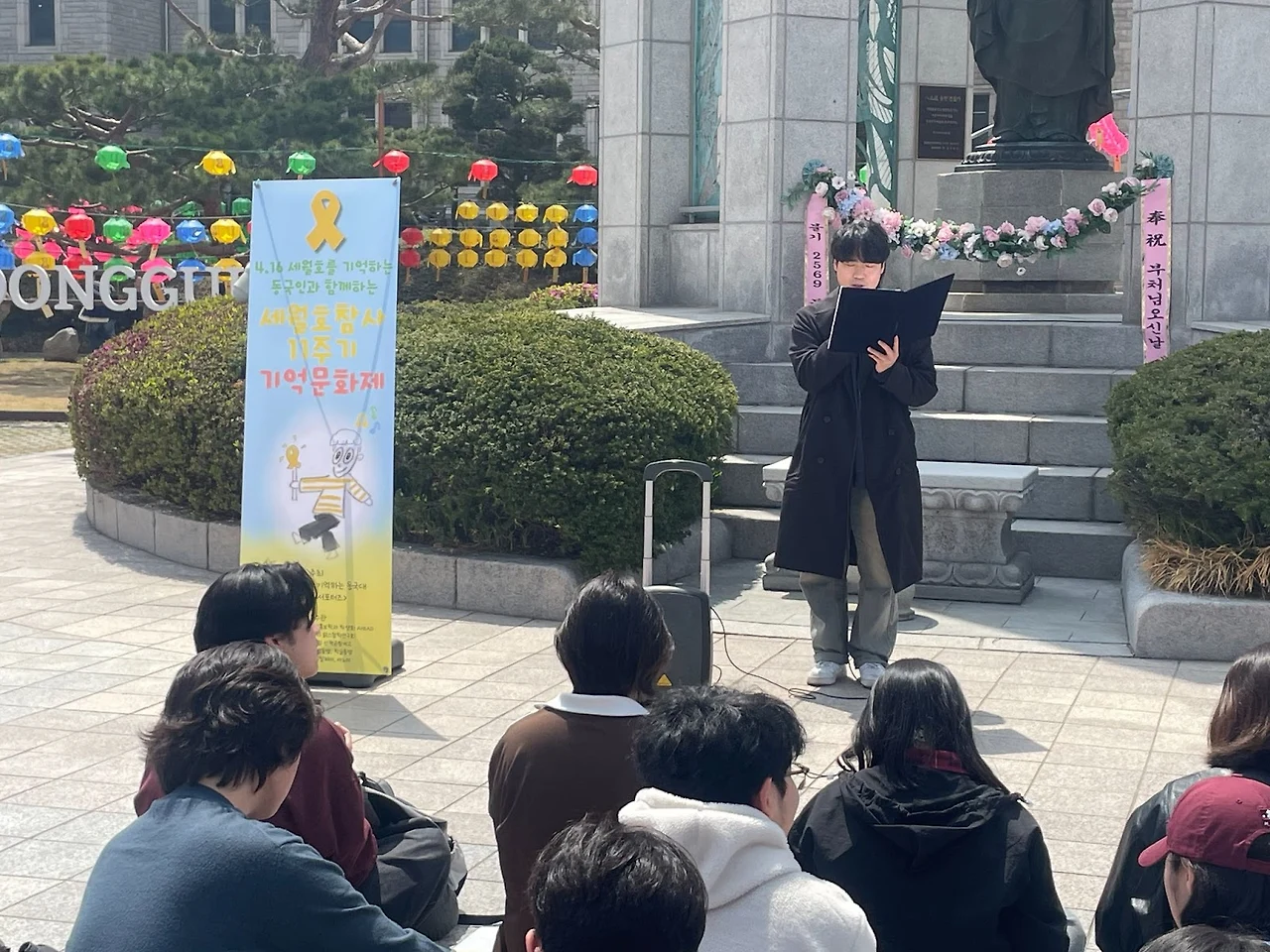 지난 4월 16일, 동국대학교 팔정도에서 <세월호참사 11주기 동국대 기억문화제>가 진행되었다. 해당 문화제는 11주기 세월호를 기억하는 동국대 <노란리본 서포터즈>가 주최하였으며, 매년 이어지는 기억의 자리를 올해도 꾸준하게 이어나갔다. 자리에 모인 학생들은 추모사를 낭독하고, 노란 리본을 달며 각자의 방식으로 세월호참사를 다시 한번 기억에 남겼다. 우리는 항상 같은 물음을 반복한다. 왜 기억해야 하는지, 잊지 않아야 하는지. 교지는 기억문화제 속 동국대학교 학생들의 이야기를 통해 다시 한번 물음에 대해 대답하고자 한다.
