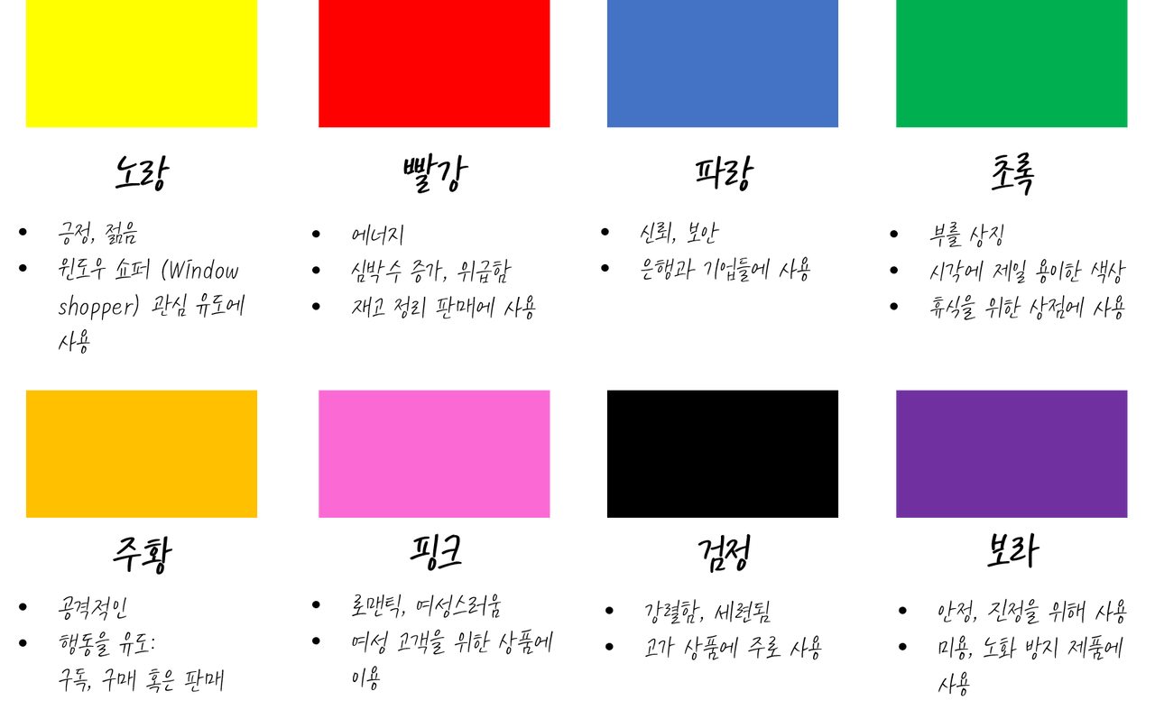 소비자들의 상품 구매를 유도하는 요소에는 다양한 것들이 있다. 이중 '시각적 효과'는 많은 비중을 차지하며 가장 강력하고 결정적인 영향을 미치는 요소는 '색상'이다.
