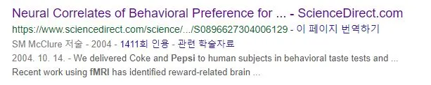 실험자들에게 펩시가 제공된 경우, 그들의 뇌의 활동영역의 변화는 큰 차이를 보이지 않았다.