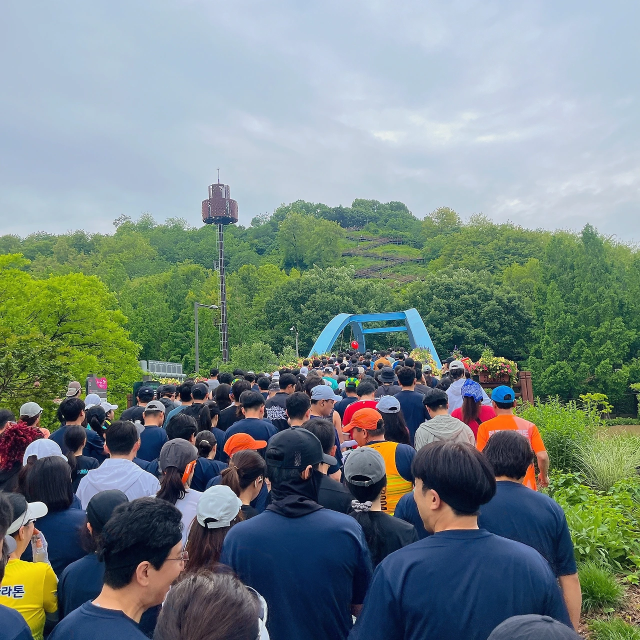 행사장에 도착하자, 2년전보다 훨씬 빽빽한 인파가 나를 압도한다. 마라톤 열풍의 눈에 들어온 것 같다. 출발은 한참 지연되어 도리어 시간이 남는다. 천천히 밀려가는 군중 사이로 출발선이 가까워질수록 심장이 터질 듯 뛰기 시작한다. ‘그래, 알아. 나도 신나.’ 그런데 얼마 못 가 병목 구간에서 몇 번이나 제자리걸음을 하다 보니 오늘 기록은 포기다. 그냥 펀런이다, 싶어 마음을 비우고 음악에 맞춰 흥을 올리고 푸르른 나무들도 구경하며 거북이처럼 나아간다.