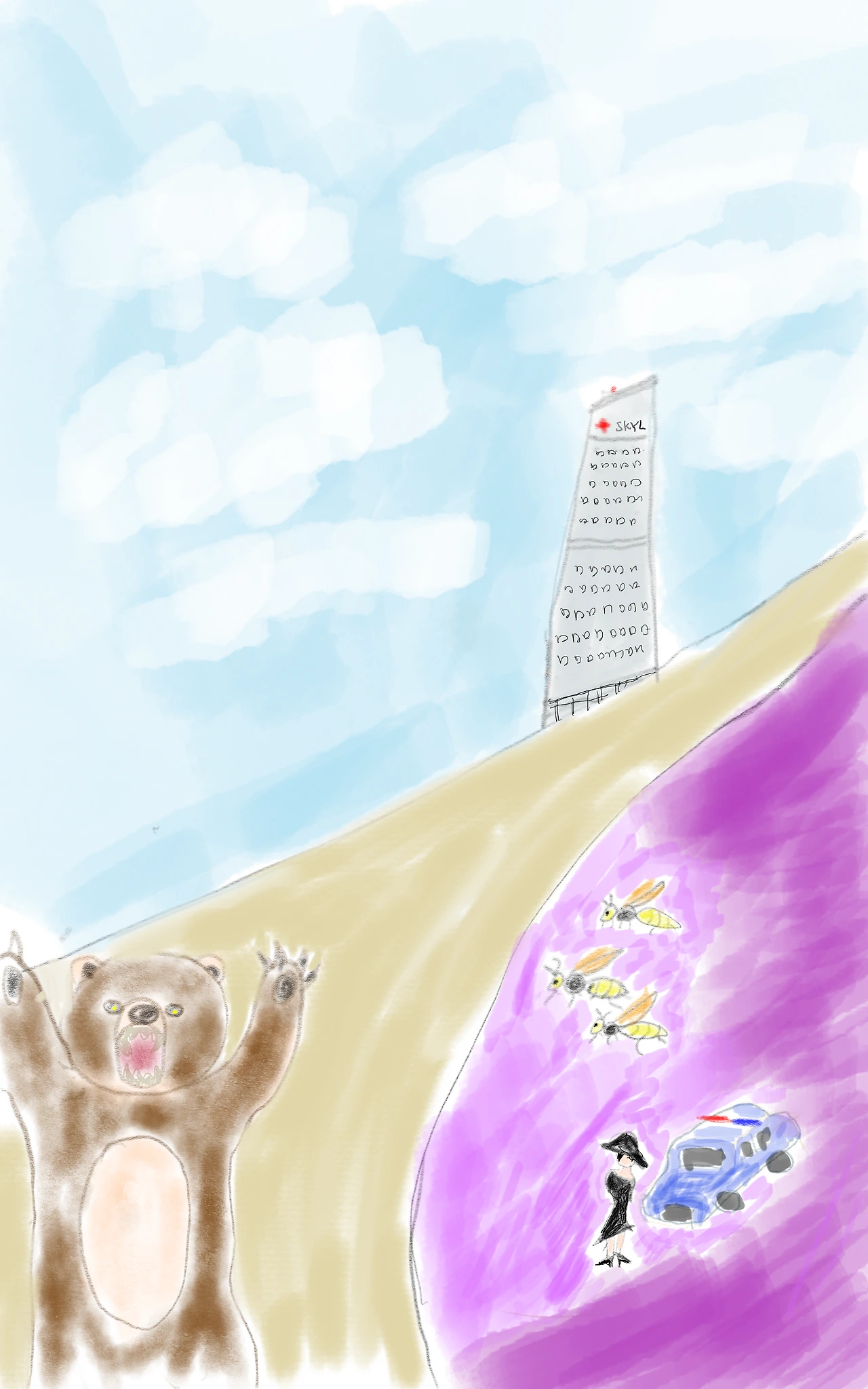 내리막 길을 중간쯤 지나자 말벌들이 쫓아오기 시작했다. 뉴스에서 말한대로 말벌은 엄청나게 많았고 만약 저 말벌들이 모두 나를 쏘기로 작정하면 쇼크가 오기까지 십 초도 안 걸릴 것 같다.