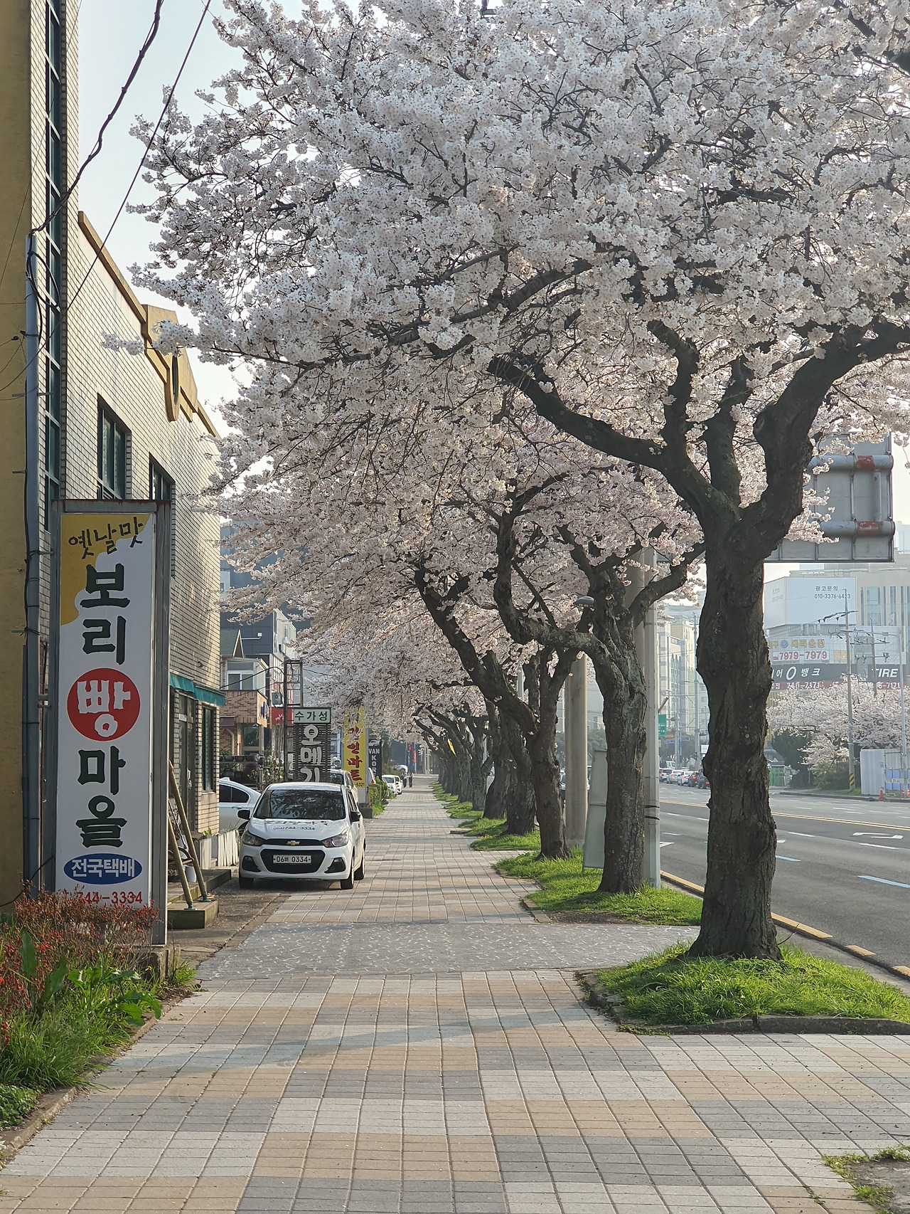 괜한 시간을 낭비했다. 이런 생각을 할 즈음 보이는 벚꽃. 그리고 보이는 빵집. 지나가다가 다른 이들과 나눠 먹기 위해서 빵집에 들러 빵을 샀다.