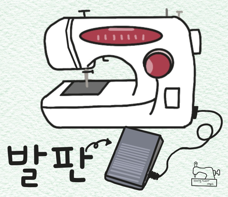 *발판 : 전원페달이라고도 한다. 발로 밟으면 재봉틀 바늘이 상하로 움직여 박음질 시작한다.