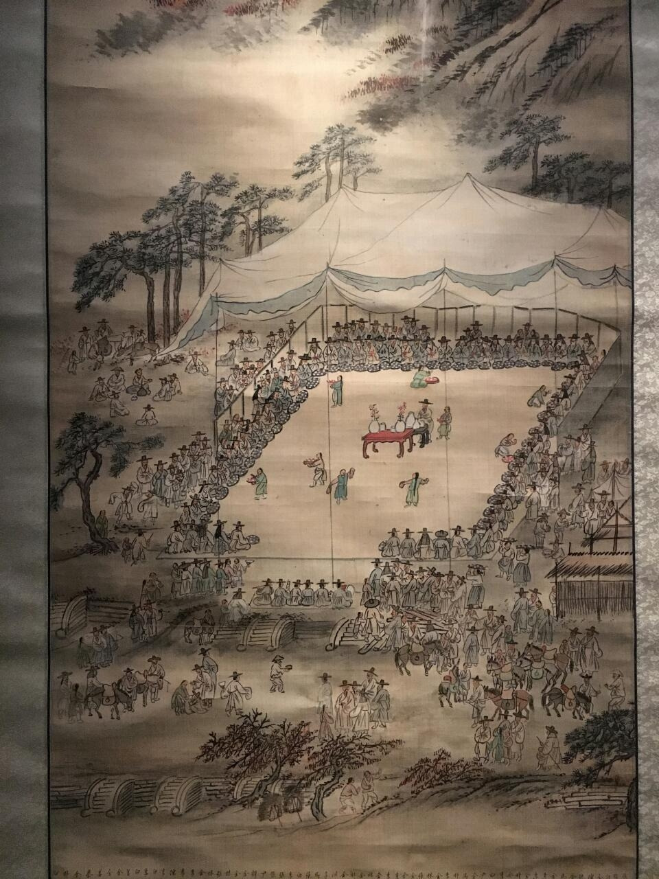 동네 한가운데에서 저렇게 사람들이 모여서 놀이를 한다. 오롯이 남성 권위의 문화 안에서 그들 끼리의 놀이를 시작되고 구경꾼 조차도 여자는 없다,라고 설명하면서 그때 여자들은 뭐하고 놀았을까요?라고 물어보는데 내 대답은 뭐하기는요? 그냥 집에 있는 거죠,라고 했었다. 참 재미없는 대화들이 오간다 싶으면서도 저 그림의 의미를 또 저렇게도 해석하는구나,라고 혼자 궁시렁 했던 것 같다. 역시 예술은 의미 부여를 잘해야 하는거야.