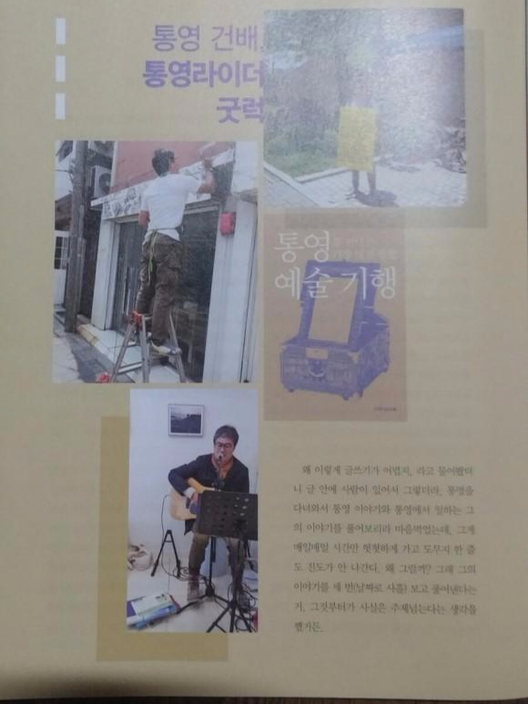 통영의 원도심 투어, 섬 여행에, 뚜벅이 투어 등등 다양했고, 무엇보다 노래를 좋아하여 자신의 공간 '둠(거점, 지금은 운영난에 철수)'에서 강산에 노래를 부르며 이웃들과 소통하더라. 특히나 강산에의 '라구요'는 진짜 숨 막히게 내가 좋아하는 곡이 아닌가.