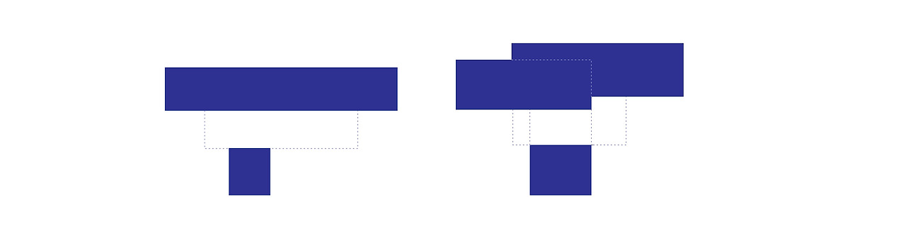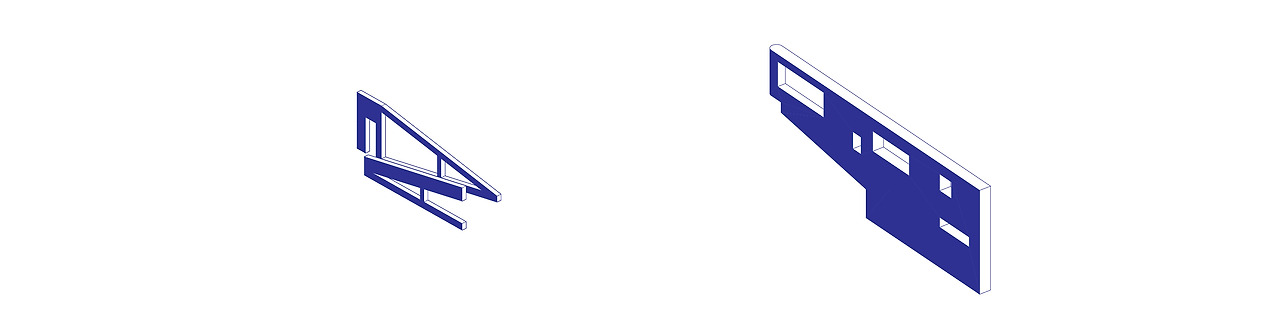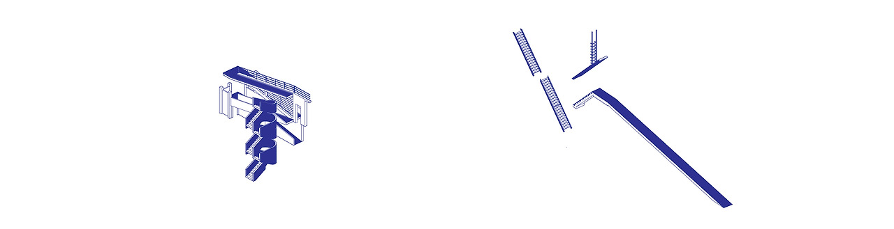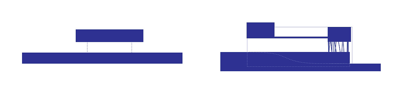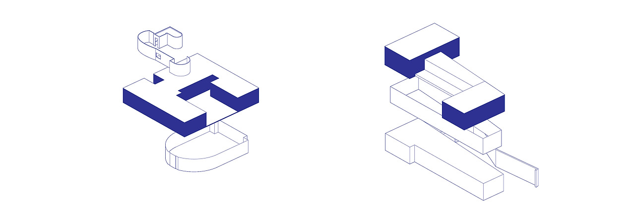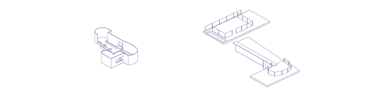 두 주택 모두 메인볼륨(상), 보이드(중), 서브볼륨(하) 구조로 구분되며 특히, 메인볼륨은 떠 있는 연출로 볼륨을 강조하며 주 거주의 기능을 담당합니다. 하지만 빌라 달라바의 경우 주 볼륨이 하나가 아닌 두 개로 나눠져 있으며 이는 각각의 볼륨에 독립된 거주인이 존재함을 암시합니다. 중앙의 보이드는 빌라 사보아의 경우 마스터 베드룸을 보조하는 실들로 구성되어 있고 빌라 달라바의 경우 공용공간으로 구성되어 있습니다.