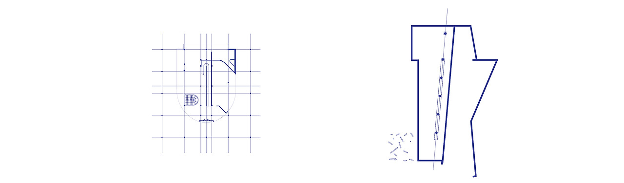 입면이 이 두 주택을 서로 연상하게 하는 비슷한 어휘였다면, 정반대로 도면에서는 공통점을 찾기 힘들 정도로 다른 문법을 사용합니다. 우선 빌라 사보아의 자유로운 평면은 비교적 엄격한 체계(그리드) 안에서 오브제(곡선벽)등의 건축적 요소가 작성되었습니다. 물론 체계 자체가 불변의 절대적 요소는 아닙니다. 가둥 사이의 간격을 다르게 하거나 일부는 원기둥이 아닌 사각기둥을 사용하면서 체계 또한 변주할 수 있는 대상임을 보여주지만 매우 소극적인 편집입니다. 하지만 빌라 달라바의 경우 보통 구조의 역할을 하는 체계 또한 자유롭게 편집할 수 있는 대상임을 보여줍니다. 사선에서의 배열, 마치 숲과 같이 질정하지 않은 얇은 기둥 등을 통하여 램 콜하는 체계에 관해서는 확실히 르 꼬르뷔제와 대립적인 태도를 드러내고 있습니다.