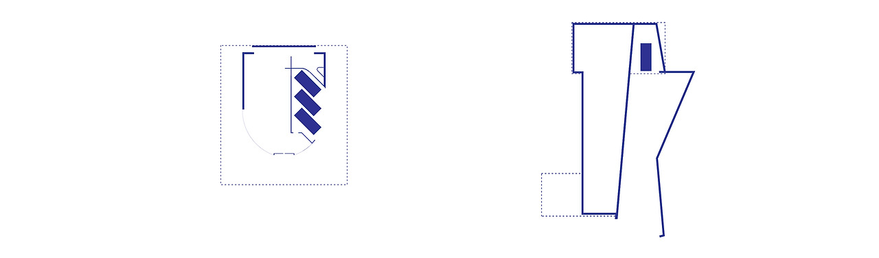 사각형 안에서 대각선을 비우면 가장 장방향의 대각선 공간을 확보하면서 주어진 범위의 공간을 가장 넓게 사용할 수 있습니다. 이 시도는 빌라 사보아에서도 보입니다. 그리고 빌라 달라바에도 하나의 긴 벽에 두 볼륨이 나눠지면서 대각선의 시각적 교류를 생성한 것을 알 수 있습니다.