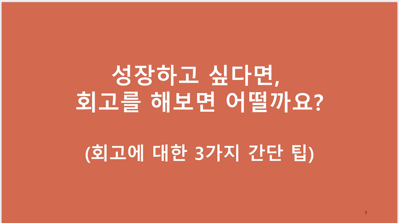 안녕하세요. 오늘 소개할 주제는 회고에 대한 내용인데, 사실 많은 분들이 관심있는 주제인지는 잘 모르겠습니다. 최대한 제 불건전한 생각이 아닌 권위있는 분들의 말로 채웠으니, 5분정도 사용하는 것이 아깝지 않게 회고의 중요성에 대해 리마인드 드릴 수 있는 시간이 되었으면 좋겠습니다. 바로 시작하겠습니다.