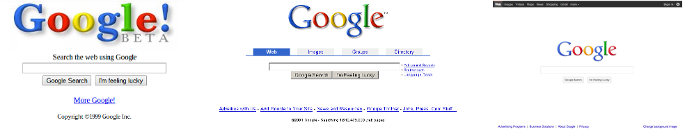 구글의 첫 화면은 검색 박스 하나만 있는 단순함으로 유명하다. 창업자인 세르게이 브린은 HTML 기술에 서툴러 단순하게 만들었다고 알려져 있다(출처: huffpost.com, 2012.3.27). 그런데 단순하게 디자인하는 것보다 더 어려운 일이 있다. 바로 그 단순함을 유지하는 것이다. 온라인 사업에 익숙한 사람이라면 알겠지만, 웹에서는 노출이 곧 수익으로 직결된다. 사용자가 클릭하지 않아도, 보여지는 것만으로도 수익이 발생한다. 첫 화면에 노출되는 서비스와 그렇지 않은 서비스의 차이는 수익에서 엄청난 격차를 만들어낸다. 이런 상황에서도 구글은 자신들의 디자인 원칙을 지키며 단순함을 유지하고 있다.
