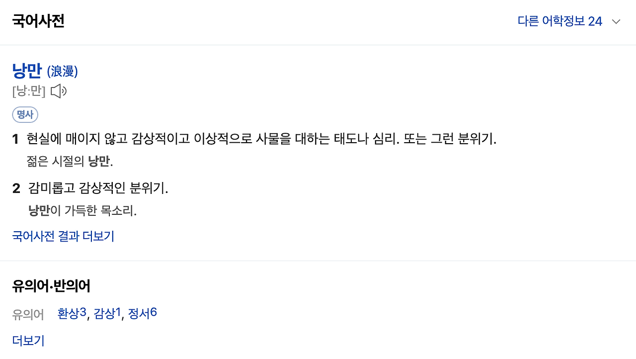 나도 따지고 보면 결국 낭만있게 살고싶어서(?) 이 난리를 치고 있는 셈인데... 나무위키에 자잘히 적혀있는 부연설명을 곁들여 읽고나니, '낭만'이라는 단어에 한층 더 정이 붙었다.