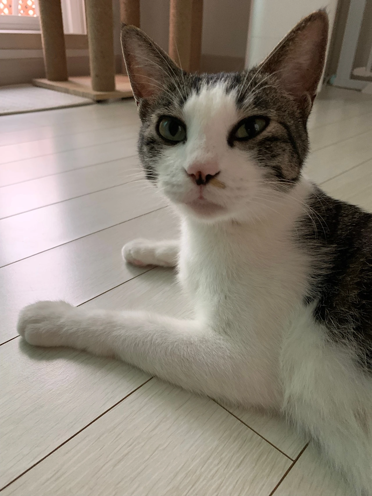 '콧물까망이' (검은색 턱시도와 코에 콧물 같은 점이 있는 턱시도냥)라 불렀다.