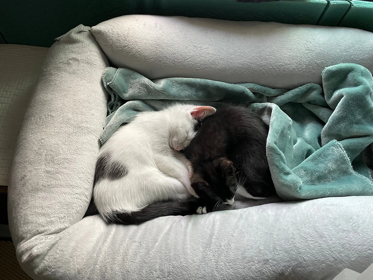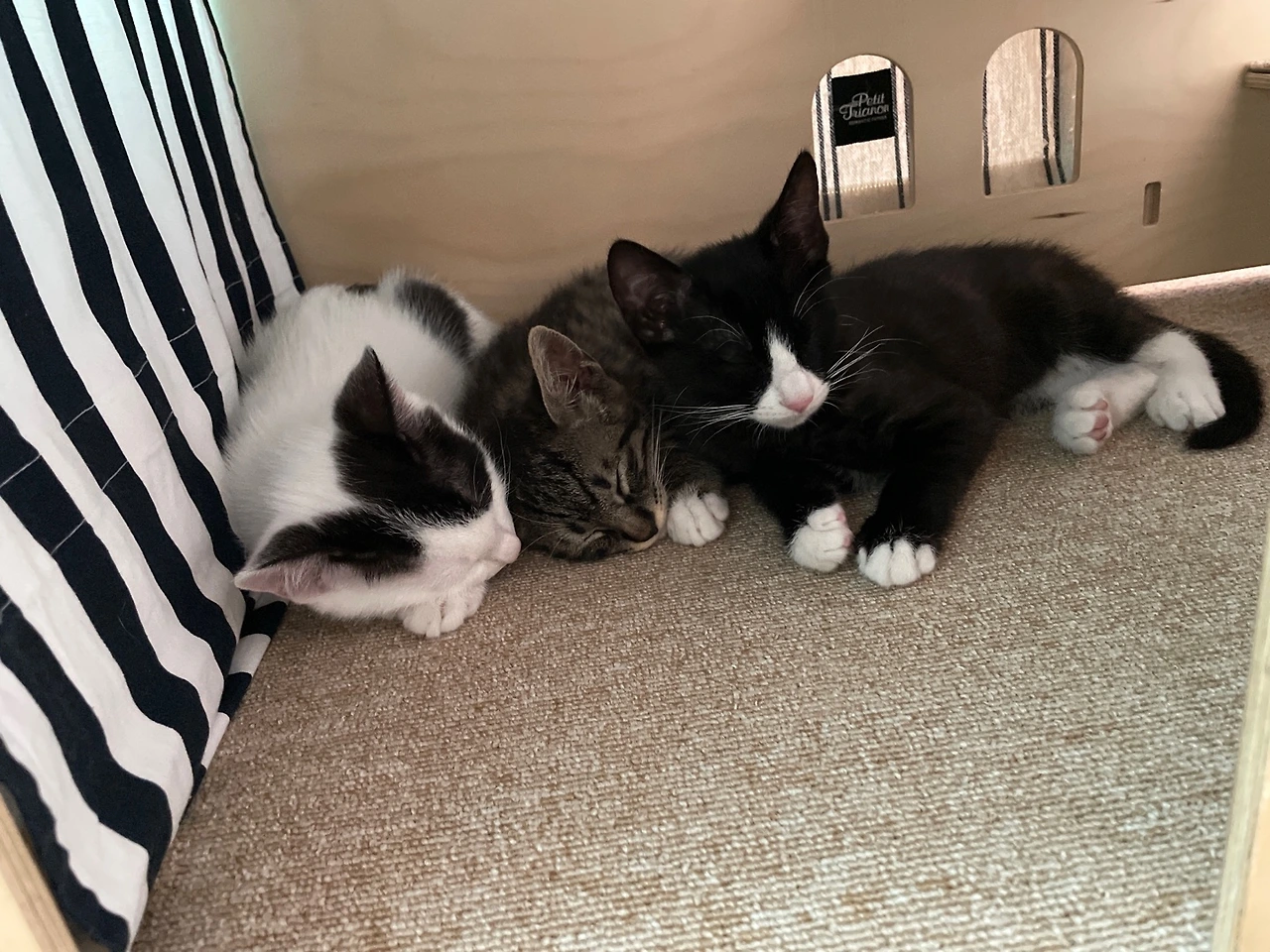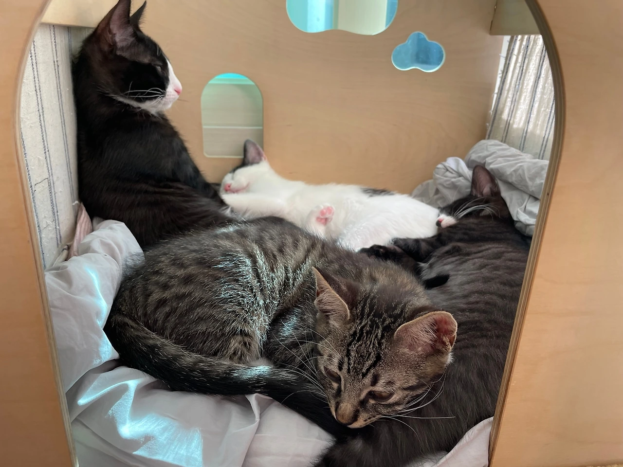 서로서로 의지하며 포근하게 잠을 자기도 하고, 잡기놀이, 숨바꼭질, 사냥놀이를 하며, 뜨거운 가족애와 사회성을 길러갔다. ( 냥이들의 사회화 시기는 생후 3주 차 ~ 9주 차인데, 이때 집사 또는 냥이들 간의 다양한 놀이와 스킨십을 통해 관계를 형성하는 것이 중요하다. 이 시기에 외부사람들을 자주 마주치게 하면 낯선 사람에 대한 경계심도 낮아진다고 한다. 물론 냥바냥이긴 하겠지만! )